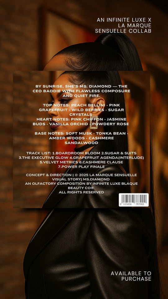 - Ms. Diamond ButterCream: Peach bellini, wild berries, sandalwood radiant, rich, crowned energy.