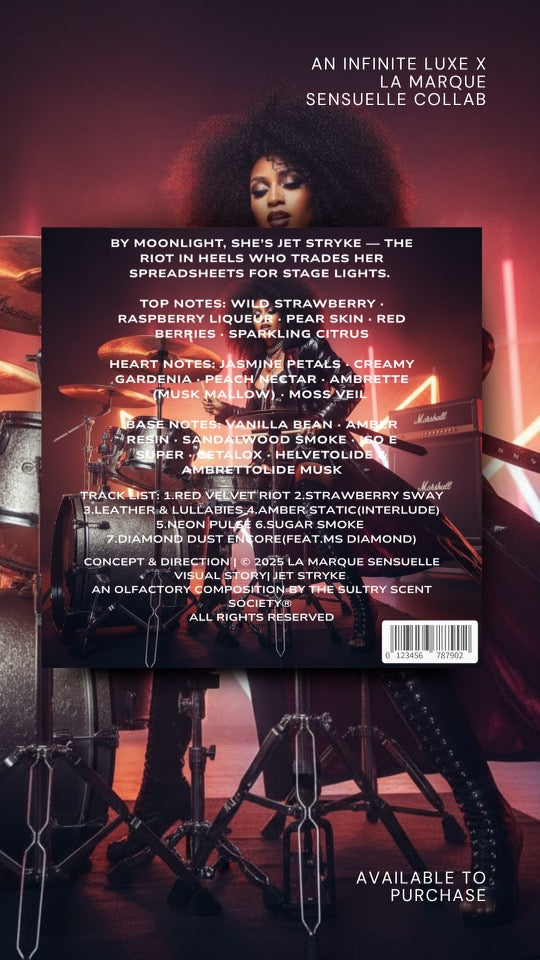 Base:Vanilla Bean • Amber Resin • Sandalwood Smoke • Iso E Super • Cetalox • Helvetolide & Ambrettolide Musk