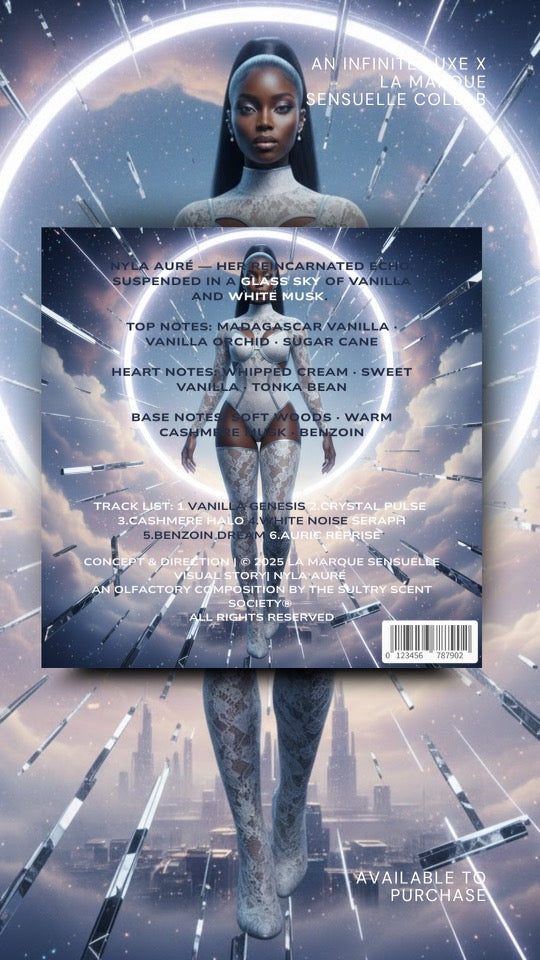 A celestial vision of elegant stillness — minimal vanilla, cashmere, and light.
