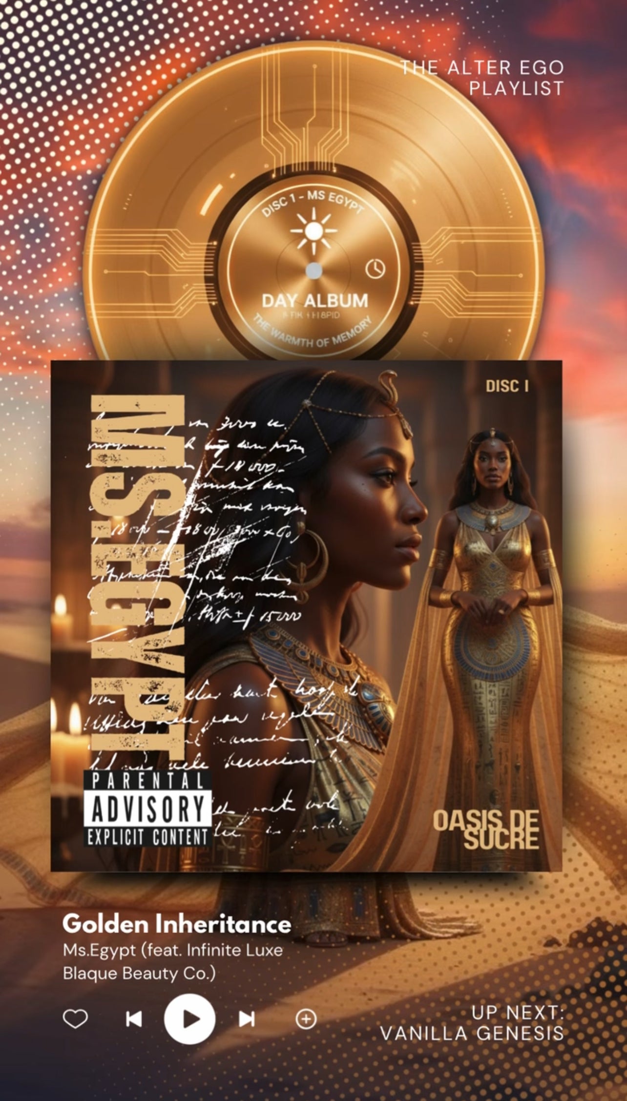 - Ms. Egypt ButterCream: Raspberry swirl, peach blossom, coconut cream, vanilla fluff, amber crystals sweet, decadent, a royal daydream.
