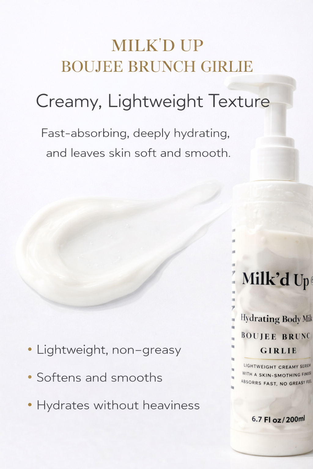 Milk’d Up hydrates and preps the skin, delivering moisture where it’s needed most.